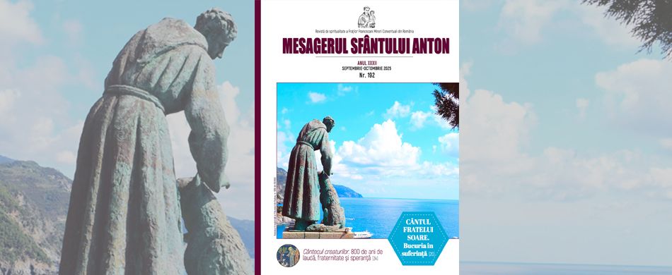 Dragi cititori, vă propunem spre lectură numărul septembrie-octombrie 2025 al revistei Mesagerul sfântului Anton. Ca de obicei, veţi putea citi articole cu tematici variate, cum ar fi: jubileul de 800 de ani de la compunerea Cântecului creaturilor, speranţa în Cristos, căutarea omului, coerenţa, compromisul, diferenţa dintre scop şi ţel, limitele şi comuniunea, unele caracteristici ale creştinului, poezie şi credinţă, crizele educaţiei şi ale legislaţiei internaţionale, inteligenţa inteligenţei artificiale etc.